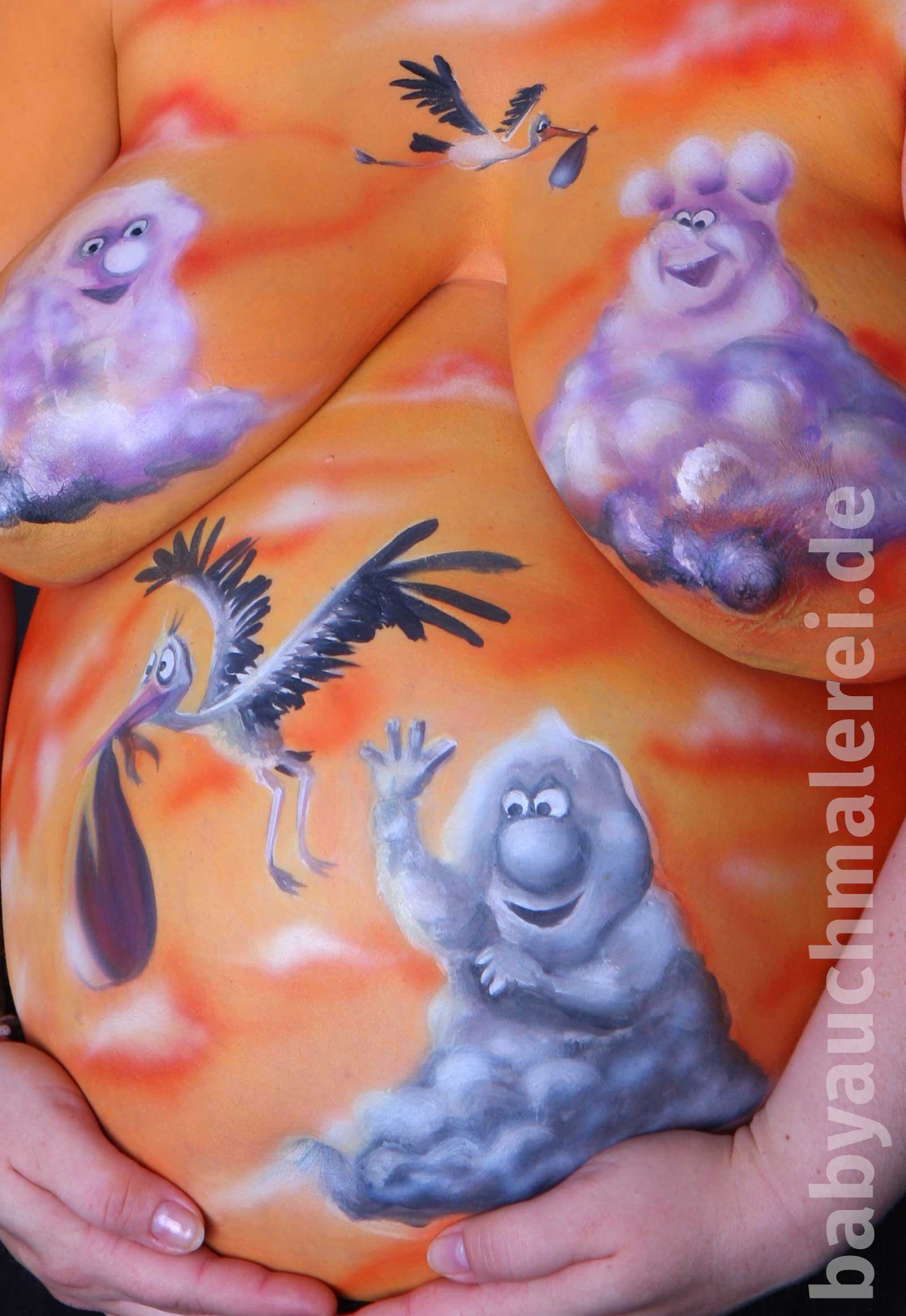Klingt zugegebenermaßen lustig, aber nein, wir bemalen keine Babies :) Mit Babybauch-Bemalung wird landläufig Schwangerenbauchbemalung (auch: Schwangerenbemalung) benannt. Vereinfacht gesagt ist unsere "Babybauchmalerei" ein Bodypainting für Schwangere.